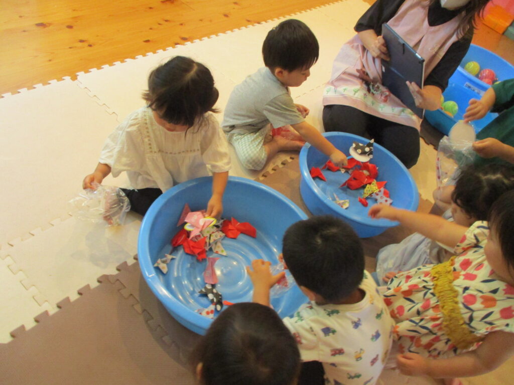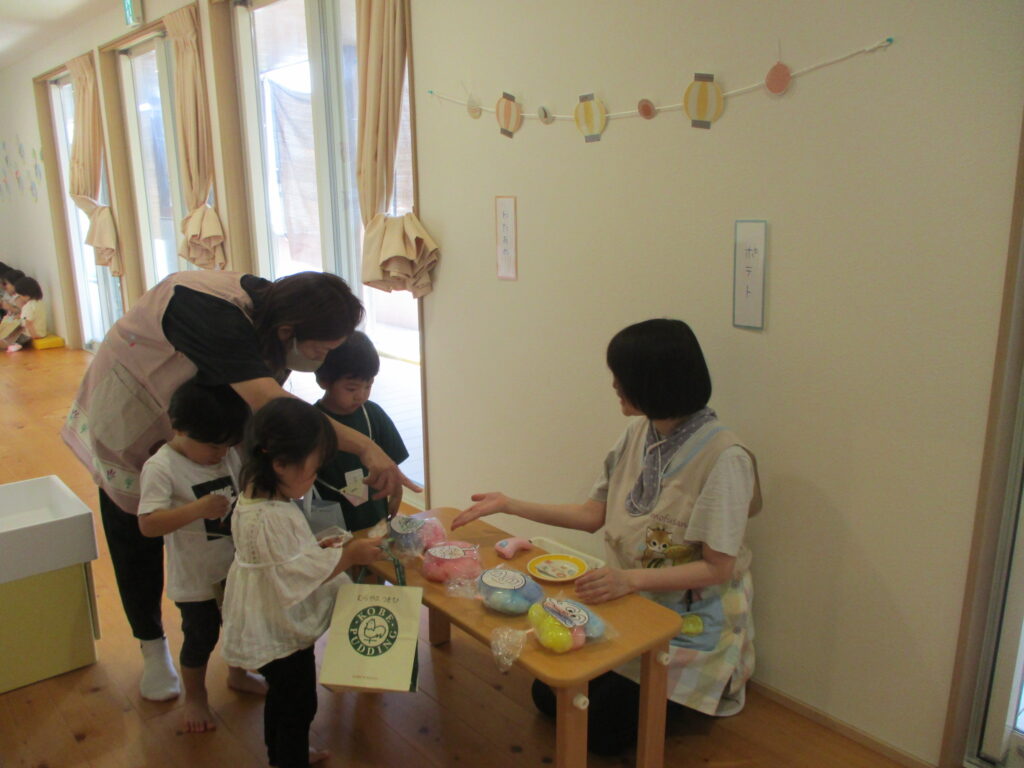 次は、お買い物😊好きな物とチケットを自分で交換でき大満足✨お祭り広場では、ヨーヨー、金魚すくい、ワニワニパニック🐊のゲーム、ボールプールと盛りだくさん!たくさんあそびました‼