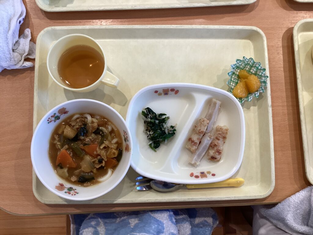 今日の給食は、カレーうどん✨美味しい❤️とよく食べていました👏